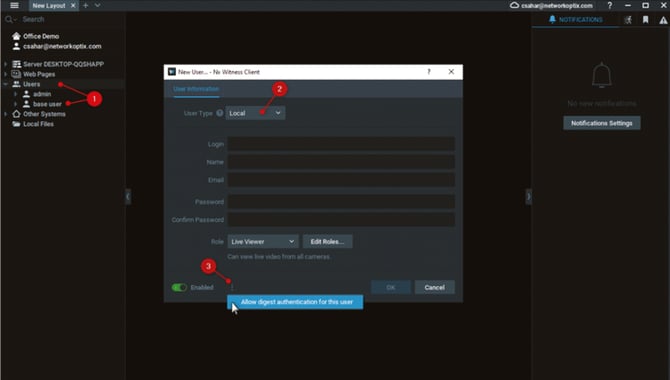 - Enter your Network Optix username and password for additional functionalities.